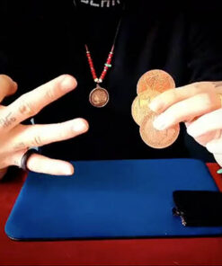 Magnifique jeu de pièces HOPPING HALF au format “Dollar Morgan” (réplique), qui vous permettra de réaliser l’effet classique des “hopping coins” (“pièces sauteuses”).