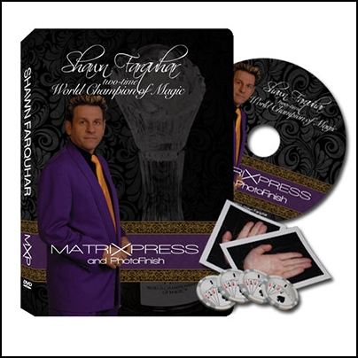 FISM’s Two-Time World Champion of Magic, Shawn Farquhar, releases MatriXpress, one of the fastest matrix routines ever! Four poker chips travel in the blink of an eye. The gimmick used can be adapted to lots of other uses and this DVD offers many, including PhotoFinish. Included in this DVD you will get the four special poker chips, two photographs and the gimmick so you can start performing right away! Everything you need to know is explained on the instructional DVD that is included in this one price!