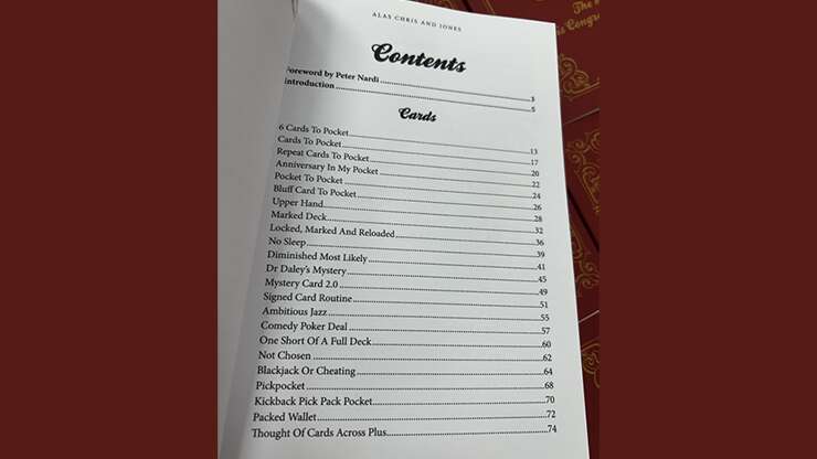 Alas Chris & Jones is the best of their work from the last 20 years. 72 routines that they have carefully selected from their previously published books as well as 16 brand new effects that have never before been seen. As well as essays on performing close up magic and misdirection.