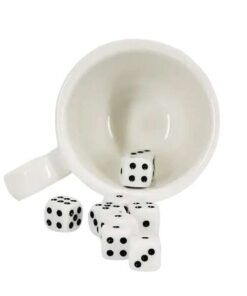 • Vous recevrez : 6 dés truqués (pour forcer les résultats de 1 à 6) + 3 dés normaux + 1 tasse truquée.