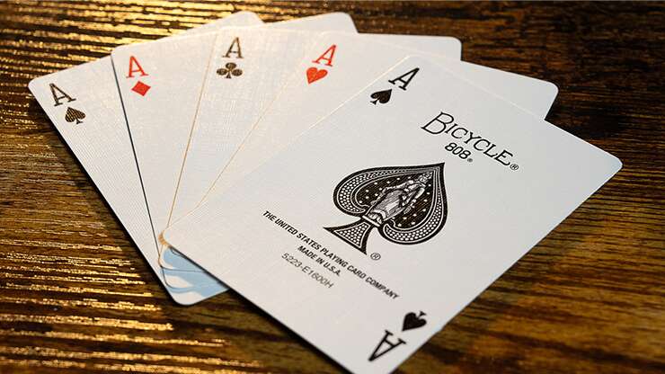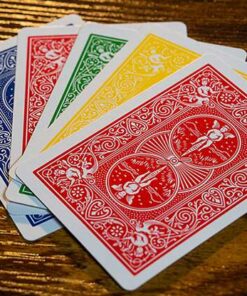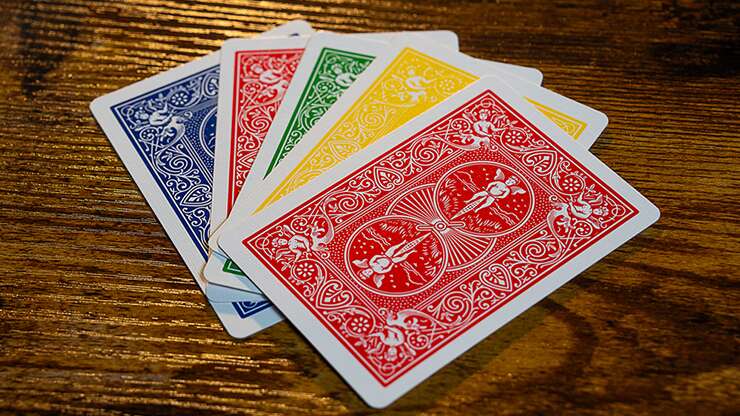Quatre cartes sont présentées face visible. Un spectateur choisit librement l’une d’elles : surprise, cette carte est la seule avec un dos rouge, tandis que les trois autres ont un dos bleu !