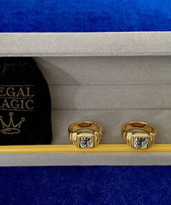 Vous recevrez trois magnifiques chevalières, plaquées or : une normale et deux truquées (l’une au trucage classique et l’autre avec un trucage aimantée). Pour présenter cet effet, vous n’avez besoin que d’une seule bague truquée, mais le set que nous vous proposons est archi complet ! Vous recevrez également le crayon de papier et le petit quelque chose qui vous permettra de réaliser le finale d’Al Koran… Le tout est livré dans un magnifique écrin de bijoutier…