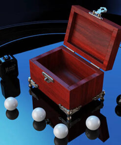 Présentez à vos spectateurs un petit coffret en bois. Celui-ci contient cinq perles blanches et une perle noire. Un a un, autant de spectateurs vont venir piocher secrètement une perle, sans que le magicien, ni même les autres spectateurs, puissent les voir…