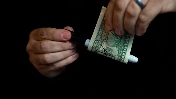 Vous entourez le sharpie avec le billet : le stylo traverse lentement et à vue le billet !
